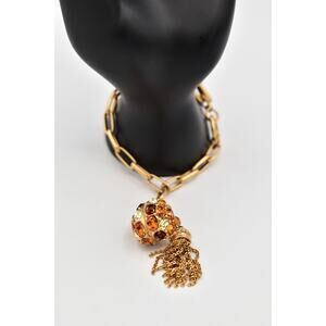Swarovski bracelet with multi-color crystals and brushed gold chains.