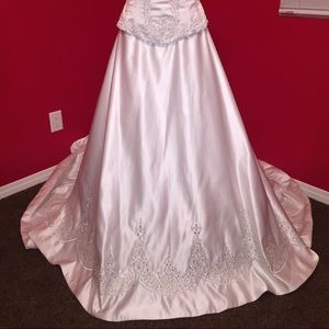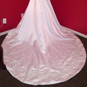 Beautifully detailed wedding gown with Swarovski beaded accents and elegant train