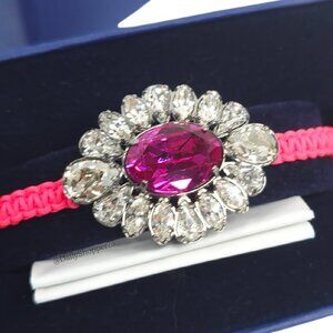 Swarovski by Shourouk Fuchsia Glass Rhinestone Braided Adjustable Bracelet