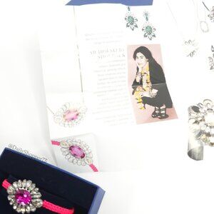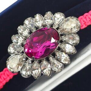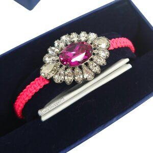 This is a NWT Swarovski by Shourouk Fuchsia Glass Rhinestone Braided Adjustable Bracelet. This stunning bracelet features a hot pink braided adjustable bracelet with a gorgeous oval-cut fuchsia Swarovski stone set with various pear and marquise cut clear Swarovski stones.