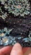 long sleeve, Crystal embellished dress so many stones and crystals and ribbon flowers sheer mesh beaded Teal blue turquoise and black