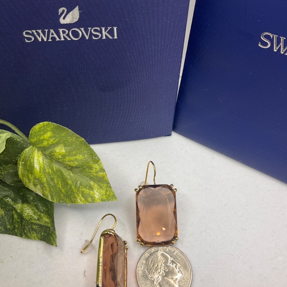 This is a pair of earrings with large rectangular Swarovski crystals. The crystals are decorated in a thin gold frame and fastened with a hook. The spectacular brown shade of crystals makes these earrings an unsurpassed thing that will perfectly match any outfit. A gift for her