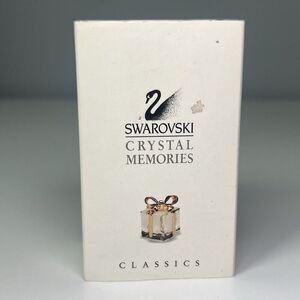 Swarovski Crystal Memories Present With Gold Bow Figurine Retired 2005 W/ Box and booklet. Absolutely beautiful condition and super cute. Please see pictures for details and ask questions if you need to.