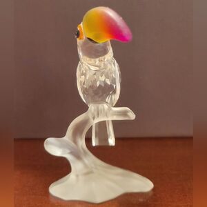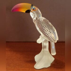 The Swarovski Crystal Toucan 234311 Feathered Beauties Retired figurine is a stunning collectible piece that features a Toucan bird design made of multicolored crystal. This contemporary style sculpture is from the Feathered Beauties collection and is a unique addition to any bird lover's collection. Made in Austria by the renowned brand Swarovski. The intricate details and use of crystals make it a beautiful and eye-catching decorative piece for adults who appreciate fine craftsmanship.