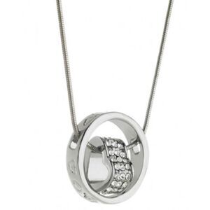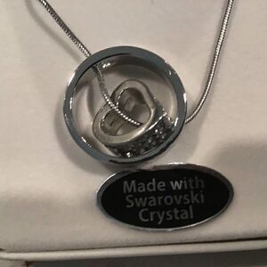 Swarovski Crystal Eternal Heart Pendant necklace.Swarovski rhodium overlay .Swarovski Crystal encrusted heart enclosed in a promise band with a snake chain.Small heart designs are engraved on outside of band.