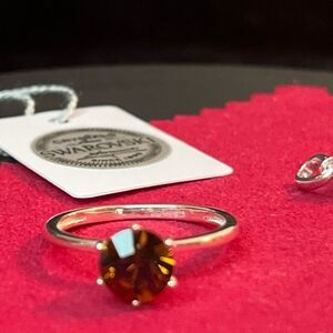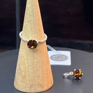 This stunning Swarovski necklace and ring set is the perfect addition to any jewelry collection. The solitaire pendant features a beautiful round natural smoked topaz crystal in a setting of 925 sterling silver. The pendant hangs from a 20-inch sterling silver chain with a lobster closure.