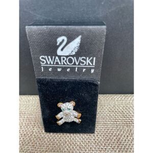 Swarovski Teddy Bear Pin Crystal Green Clear Gold Color Rhinestone