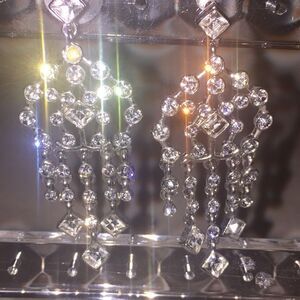 Beautiful sparkling earrings, ONE MISSING STONE (look at the photo with the red arrow). It is hardly noticeable and can be replaced easily.