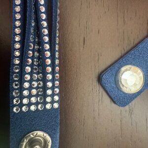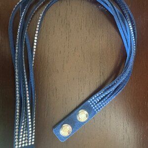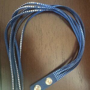 Stunning Swarovski Navy Leather and Crystal Wrap Bracelet. Double Snap features Two Large Crystals. Can be used as a choker. Tender suede leather. Only wore once.