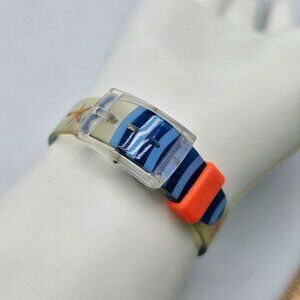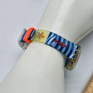 Swatch Blue White Ocean Motif Red Cloud 26mm Silicone Band 1992 Vintage Watch