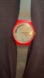 Early 80’s rare Compu-Tech Swatch Watch. Bold red case with a sleek strap. Unique dial design with colorful accents. Perfect for a modern look. Slight signs of wear on band where it was clasped. Only worn a short time, band is not warped. New battery. Watch runs properly.