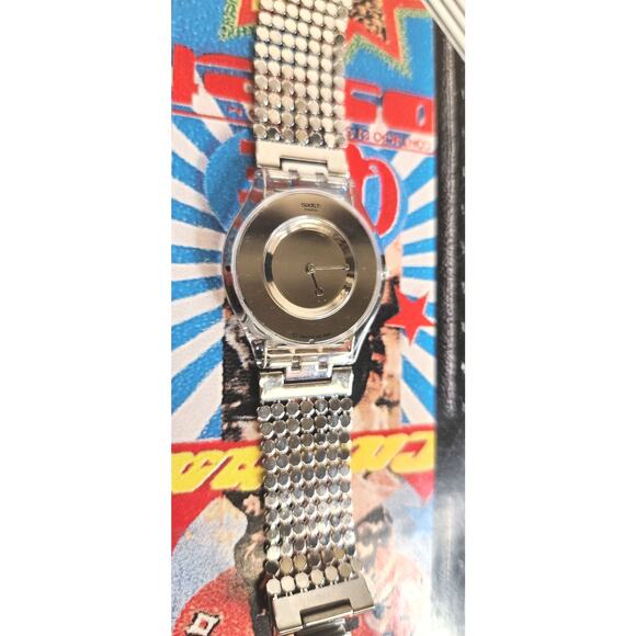 Swatch PAVED IN SILVER SFK103 1999 SKin Ultra thin watch New with new battery