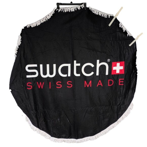 Swatch Swiss Made Black Round Towel With Fringe Swag Gift New