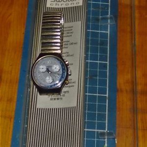 This is an authentic Swatch watch, SCN 105 Chrono. It is from the Spring/Summer collection in 1993. The watch is in excellent condition and it comes in it's original box, complete with instruction manual. The watch has a new battery and was bought from a legitimate Swatch retailer