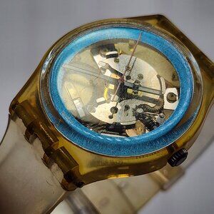 The brand is Swatch, a renowned name in the watch industry, and the model is GK113. This watch is ideal for anyone who is looking for a vintage timepiece to add to their collection. It's categorized under Jewelry & Watches, Watches, Parts & Accessories, and Wristwatches. Don't miss out on the chance to own this vintage Swatch Blue Disc Model GK113 wristwatch.