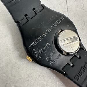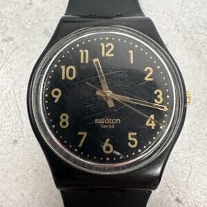 Swatch Watch Mens 34mm Black Golden Tac Swiss Quartz New Battery
