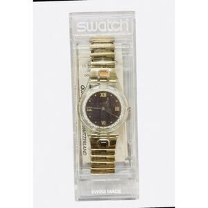 New old stock - unworn but does show some imperfections as expected from a vintage Swatch however, The original film is still on the crystal (Face) The case and paperwork are included and a new battery has been installed.