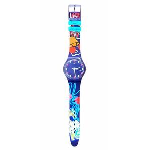 The Swatch Watch What Happens In Vegas SUOZ234 is a 2016 limited edition timepiece designed for unisex adults. This sporty and casual wristwatch features a blue bezel and case with a 41mm round shape. The watch is water-resistant up to 30m and comes with a two-piece silicone strap in blue and multicolor. Made in Switzerland, this Swiss-made watch boasts a quartz movement and analog display, complete with original box and packaging. Perfect for those who appreciate a unique and stylish timepiece with a touch of Vegas flair.