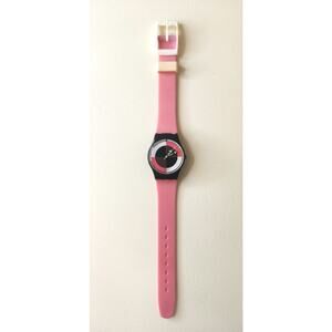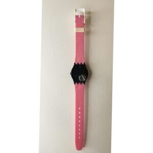 Pre owned watch with a new authentic Vintage Swatch strap. There is some ware to the case. There are scratches that are visible when examined from up close. There are small chips in the plastic case. We will polish the watch out before shipment and install a new battery. Overall this is a great little vintage Swatch and has alot of life left to it.