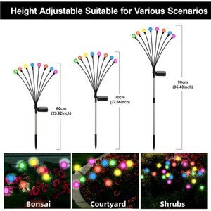 【Multiple heights available】Each firefly light is equipped with 2 different heights of support rods, which can be combined into 3 different heights (60/70/90cm), with the new four-pronged ground spike, the installation is more stable and sturdy, adapted to a variety of application scenarios.