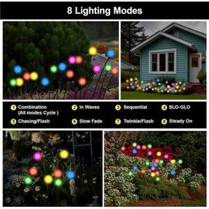 Swaying Solar Lights for Outside, 8 Mode RGB Color Changing Firefly Outdoor