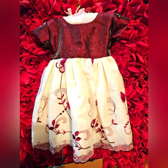 Swea Pea & Lilli Toddler Dress Size Large Burgundy & Cream Dress Floral Like New