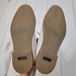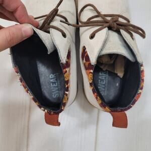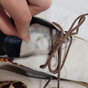 Super cute Swear London suede booties! Almost Chukka boot style with higher ankles and pull tab back. Boots have embroidered edges and an almond toe. Suede has some staining and marks but they aren't too obvious when worn. Size 38 or about a US size 8