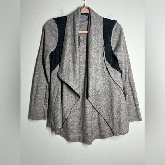 Sweat Rain Womens Gray Drape Open Cardigan Sweater Zip Pockets Size Small