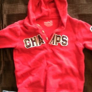 Red champs hood sweat shirt and The children's place 24 month jeans.