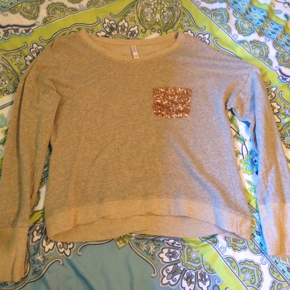 Taupe-y gold color with a gold sequined pocket. Slightly cropped and only work once.