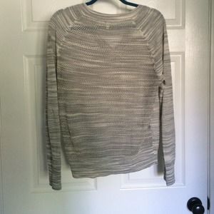 Grey and white sweater. Knitted back kind of see through.