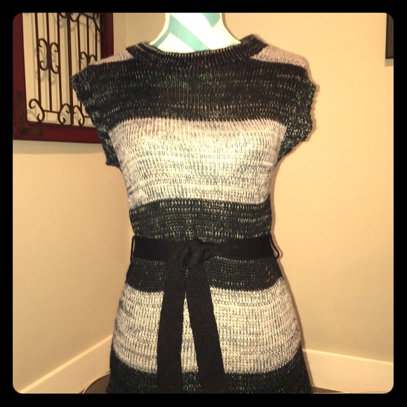 Black and Grey short sleeve sweater with a belt. Size medium. Good condition.