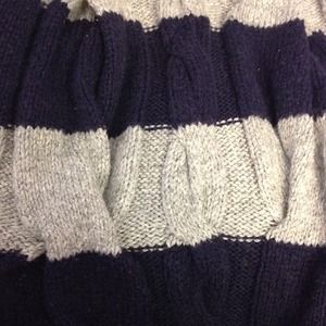 It has grey and navy strips. "Cut off" selves cute twist pattern in the front. only worn once it is in great condition 😊