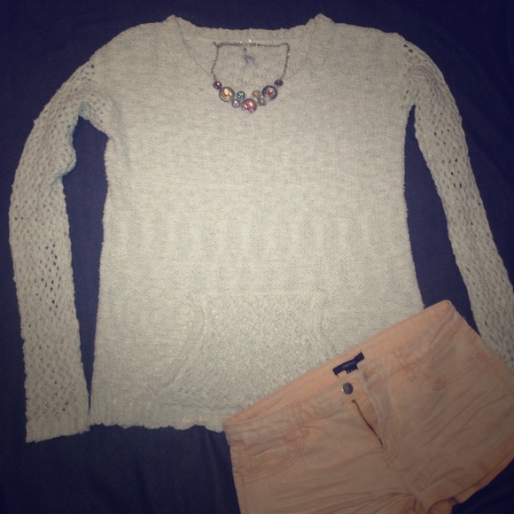 Bethany Mota 2014 Spring Collection sweater. Slightly see-through cream color with eyelet type style on sleeves and pocket. Size M but is oversized. Cute on S and also up to a L. 🌺Ask questions. Make offers. I bundle! Smoke free home.🌺