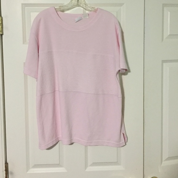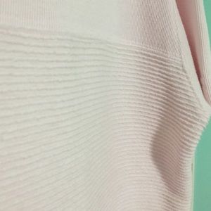 Light pink slouchy sweater shirt w/ stripe texture in the middleYou can easily dress up or down. REALLY cute with a pair of leggings if u wear it over sized! :)