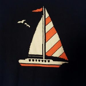Old Navy boat sweater boat is coral and white sweater is black/navy blue