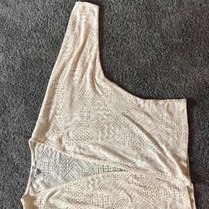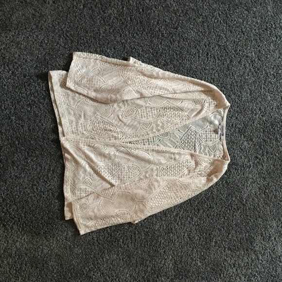 Cute lightweight sweater. Large but fits like a medium. Cute pattern! Sleeves are three quarter length.
