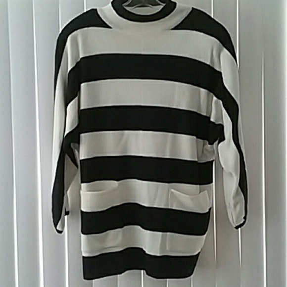 Black and ivory dolman sleeve 2 pockets in front with shoulder pads in excellent condition!