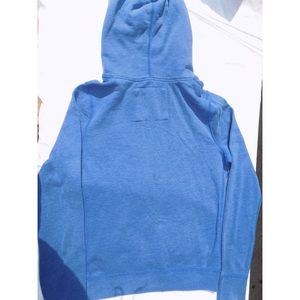 Really warm blue sweater. Perfect for those cold days out. The hoodie is also very warm and still has tie strings attached.