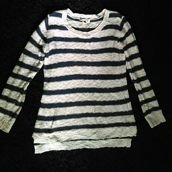 Off white and Navy Blue, super comfy and flattering! It was very loved but now fits like a Medium. It's worn but still in good condition!