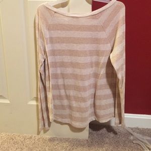 Tan and gold striped sweater (Shimmer is very subtle) crewneck
