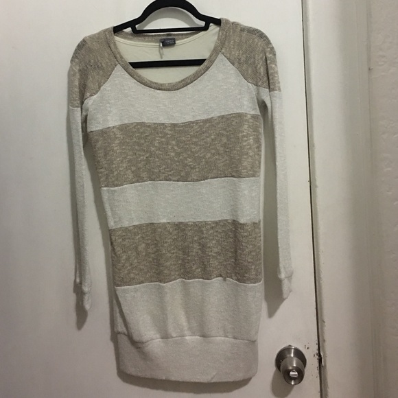 Long tan and cream sweater. Tank liner built into the sweater. Good condition