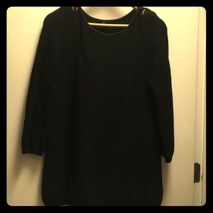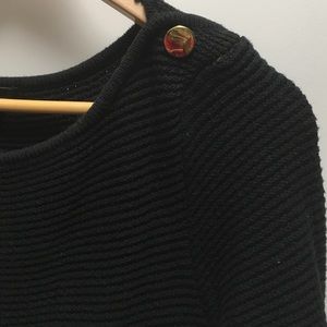 Three quarter sleeved long black knitted sweater with gold buttons. Size medium