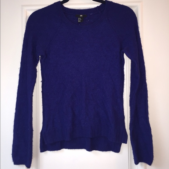 Blue Sweater, a little brighter than shown in the picture. There is a stitched polka dot pattern and is a little itchy so it's best to wear with a camisole underneath