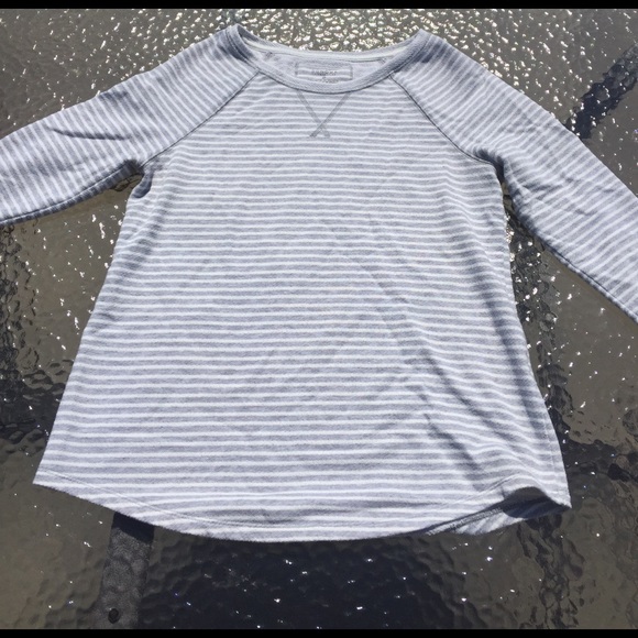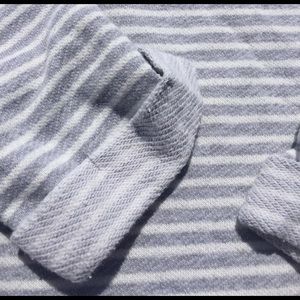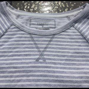 Striped white and light gray knit by Sonoma. Small cuffs on sleeves. Stitching detail at seams