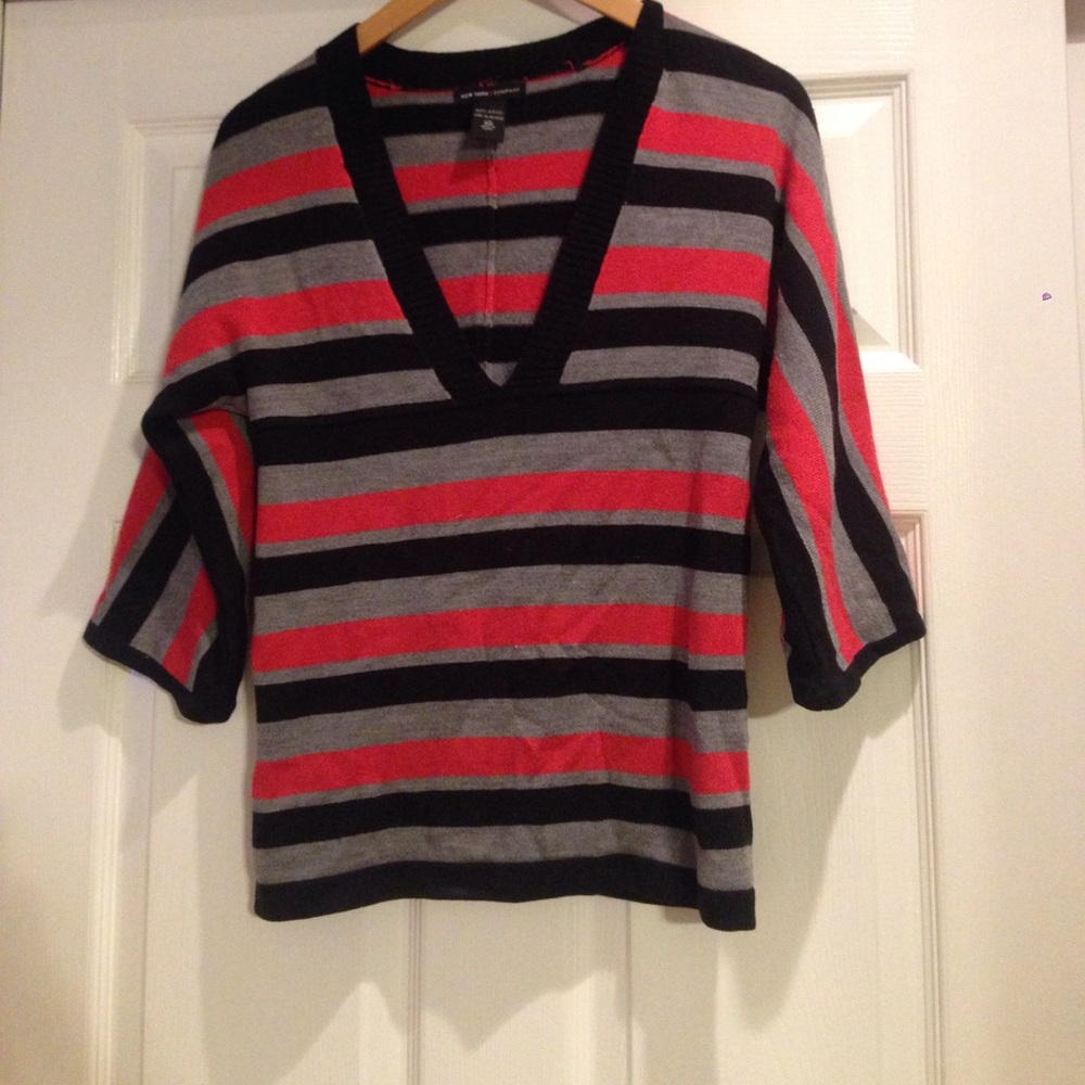 Super cute, well loved striped sweater from New York and Co. size XS - would still wear if I could fit into it. It's more of a fitted sweater than a loose fit piece. Tailors right under the chest to give the girls some room 🤣.