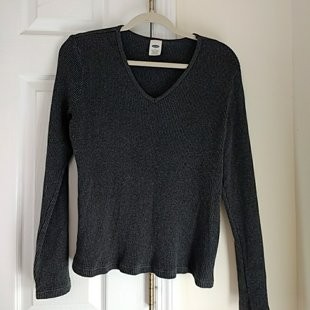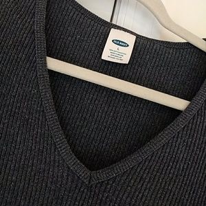 This dark gray sweater goes great with jeans. It's from Old Navy. Size L.