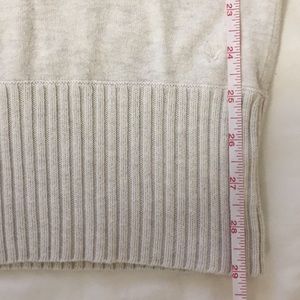 American Eagle Outfitters sweater. Worn with signs of piling in 4th picture not really noticeable when worn. No rips or stains, can be worn with jeans or stretches out to be worn with leggings. Last picture shows measurements from top of shoulder to bottom of sweater.