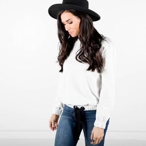 I love the bow tying detail at the bottom. Elastic bottom and loose fitting