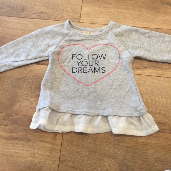 This adorable light weight little sweatshirt/sweater is perfect for a chilly night. Has a lace detail around the bottom. Great condition. No stains or tears. Smoke free home.